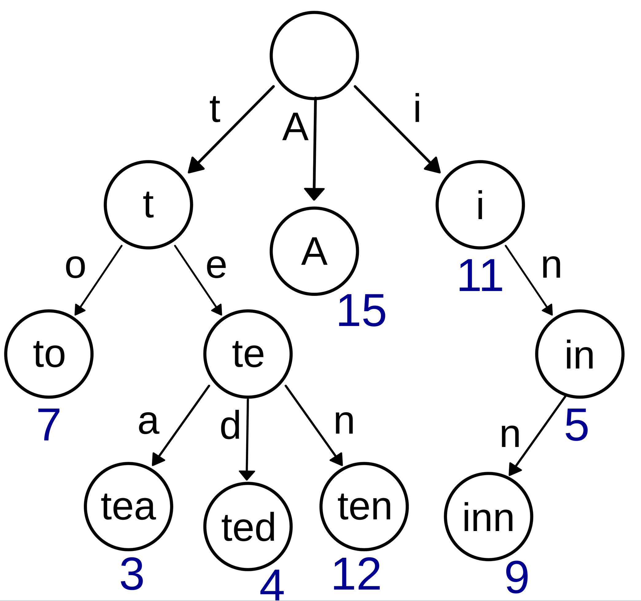 Given a Trie and a string of length , we can return a pointer to the subtree associated with it in time.