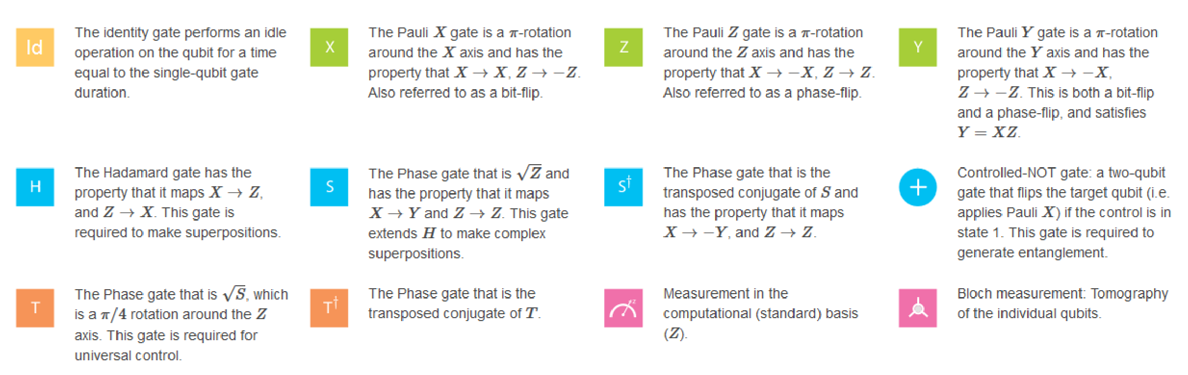 The notation for quantum gates has been mostly standardised. Examples include the Pauli Matrixes, the Hadamard gate and the Phase gate.